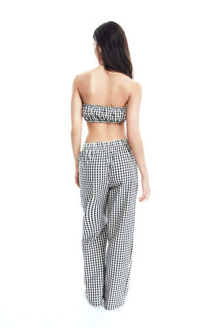 Calça de tecido 100% algodão em padronagem "Vichy"preto e branco. Com elástico na cintura. Modelo super estiloso e confortável.
